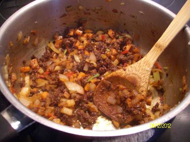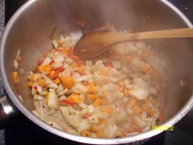 Sopa de carne vegetal1 libra carne de guiso Cubed - temporada con condimento favorito y sacudida en harina, sacuda el exceso1 cebolla grande - picada (grande)1 libra de zanahorias1 - 2 nabos Cubed (opcional)5 a 10 tallos grandes de apio picado5 a 10
