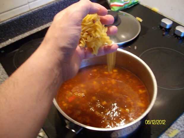 Sopa de carne picante con Pasta (3 / 3 paso)