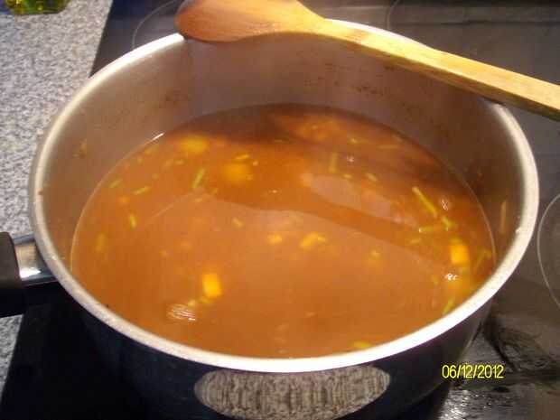 5. Llevar a ebullición y luego cocinar a fuego lento durante 20 minutos de para los sabores a desarrollar y las zanahorias a cocer.