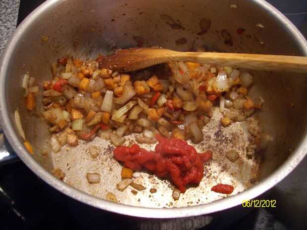 3. Añadir las especias Chile, revuelva para encorporate soltar los aromas y luego añadir el puré de tomate