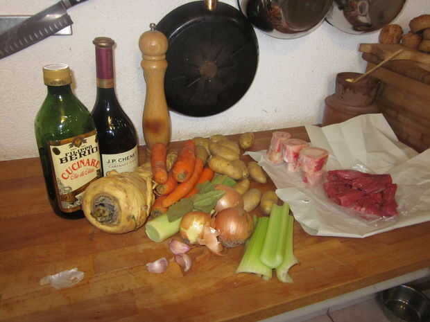 # 1 guiso de carne de res (o barato asado cortado en trozos grandes)