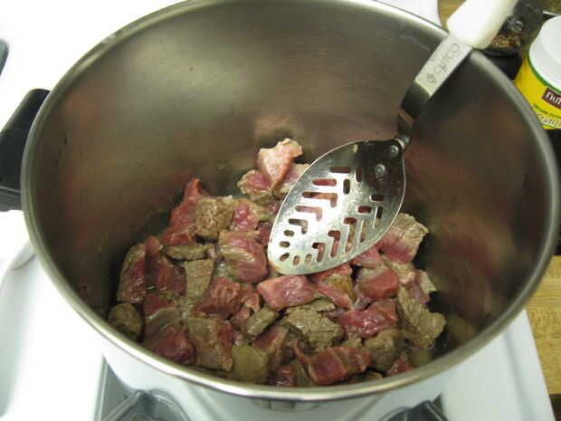 Yo prefiero usar aceite marrón mientras la carne, ya que encontrar carne guisada que generalmente en la parte magra. No elimine esto - si usted está preocupado por el contenido de grasa en el acabado del producto saltar el aceite.