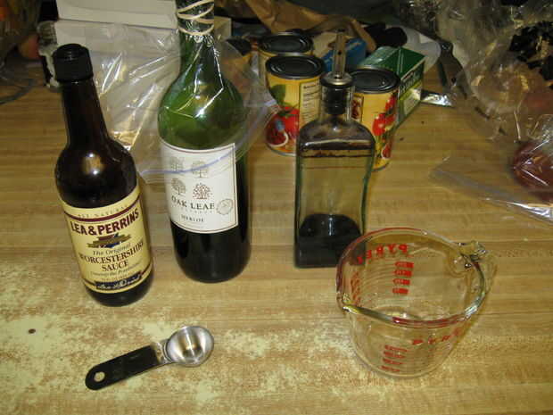 Esto también es el momento de añadir cualquier potenciadores del caldo líquido si vas a utilizar. He añadido 2 cucharadas de Worcestershire (1/8 taza si la taza es la detallada), merlot 1/4 taza y 1/4 de taza de vinagre balsámico.