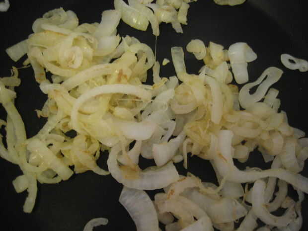 4. Cocinar a fuego bajo/medio revolviendo ocasionalmente hasta que las cebollas son translúcidos y empezando a dorarse