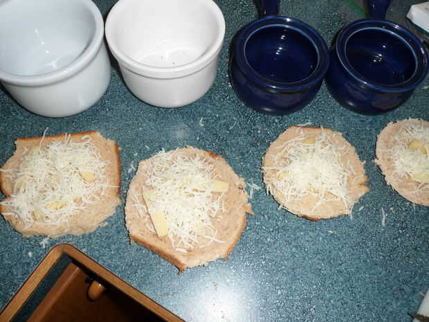 No se preocupe si algunos de los quesos se extiende más allá del borde del círculo de pan--derretirá y palillo al lado de la taza, y será divertido pelar apagado más adelante y comer deliciosamente.