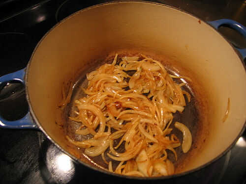 En un poco de aceite en una olla pequeña, rehogar la cebolla hasta que esté suave y comenzar a dar vuelta a marrón.