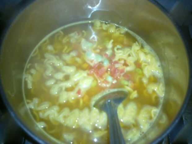 • Añadir los fideos y cocinar hasta que estén suaves.
