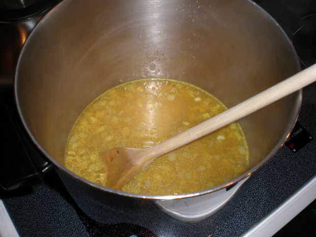Paso 2: Preparación de la cebolla y agregar el caldo!