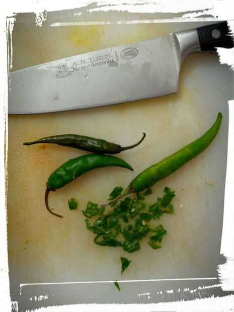 - 2 pimientos de dedo caliente, cortada en cubos, sin semillas