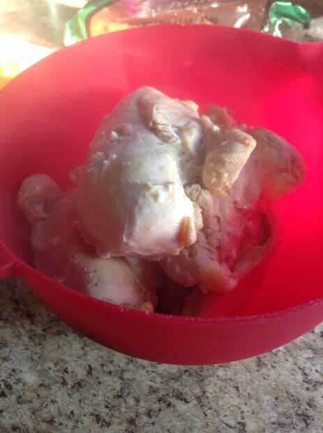 Paso 5: Coloque el pollo en un recipiente a enfriar. Escurrir el pollo.
