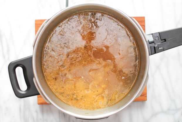 Puede quitar la grasa en la olla o mantenerlo. Es realmente suya. Creo que tiene un sabor impresionante por lo que solamente retirando la espuma si hay un montón de él. Para desnatarlo, agarrar la cuchara de metal más grande tienes y arrástrelo suavemente por toda la superficie para tomar la grasa. (Normalmente nivelados antes de colocar los fideos en y luego mientras los tallarines se cuecen demasiado. El almidón de la pasta puede a veces hacerlo más fácil.)