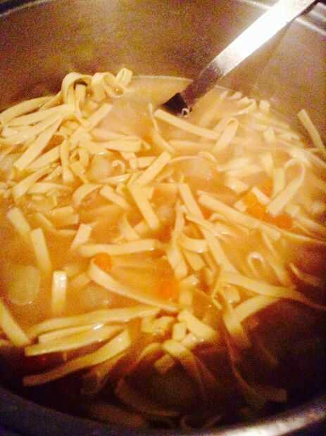 para mí sopa de fideos es una comodidad, es lo que cocino cuando tengo un resfriado, cuando me siento miserable, y cuando quiero que un sabor de hogar... está inspirado en mi sopa de tallarines del pollo de abuelas polacas.Para hacerlo desde cero lle