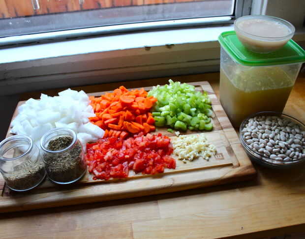 - 1/2 libra seca frijoles blancos (estoy utilizando gran norte)