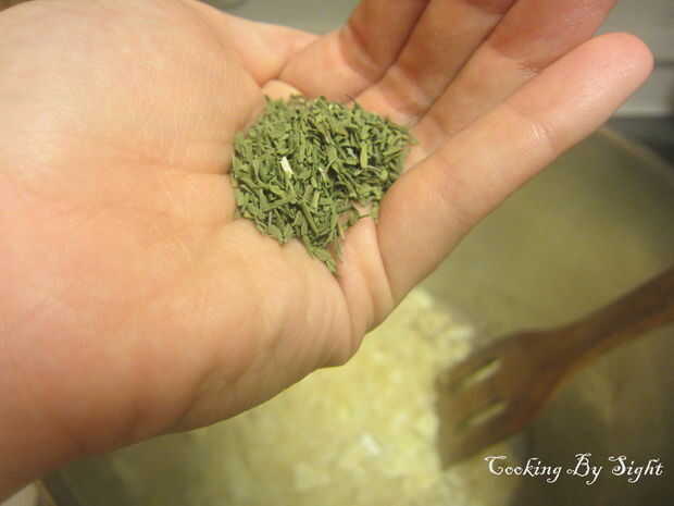 Mida un pequeño palmful de ajedrea y añadirlo a las cebollas y el ajo, aplastándolo con las manos como caer en. Agregar el clavo de olor en este punto, también.