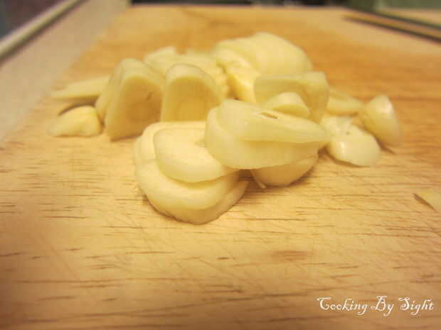 A continuación, cortar o picar el ajo. Cuánto ajo agrega a este plato realmente depende de tus preferencias personales. Yo diría que 3-4 clavos de olor es una buena cantidad, pero usted puede ir con tan poco como 2 dientes o tanto como quieras. Mezcle el ajo con la cebolla y revuelva hasta fragante, unos 30 segundos.