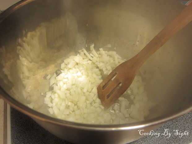 De lo contrario, el primer paso es el calor el aceite a fuego medio en una olla grande. Cuando comienza a reflejo y brillo, es hora de tirar en las cebollas. Cocine, revolviendo ocasionalmente, hasta que estén casi transparentes.