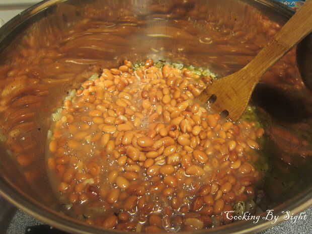Revuelva y deje que el cocinero frijoles y cebollas durante unos 15 minutos mientras preparan la col rizada.