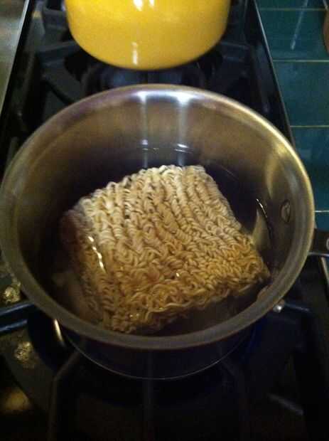 En primer lugar, conseguir un bote pequeño de agua y ponlo en la estufa en alta. Añadir un poco de aceite de oliva al agua. Ahora es el momento para poner los fideos en la olla. A continuación haz una taza y crack los 3 huevos en un vaso pequeño o recipiente.
