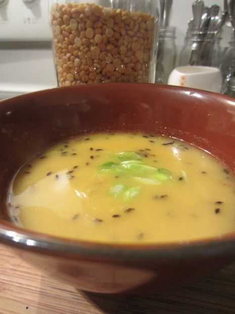Sopa de guisantes amarillo indio (Dal)