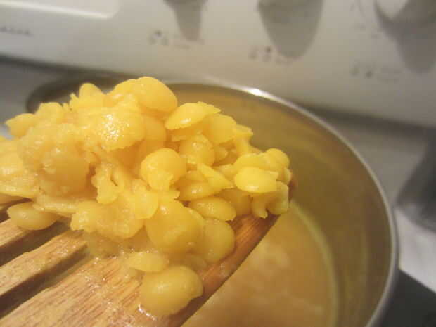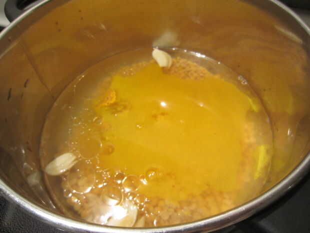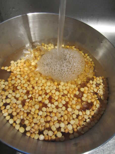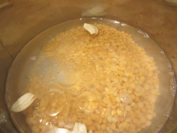 2. poner guisantes amarillo, agua, ajo y cúrcuma en una olla y hervir.