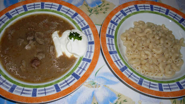 Hay muchas versiones de la sopa de goulash, no sólo en Hungría donde goulash es originalmente de, sino también en los países vecinos. Algunos gulash es más como la sopa en lugar de guiso como.Esto se puede preparar en olla regular en el horno, pero p