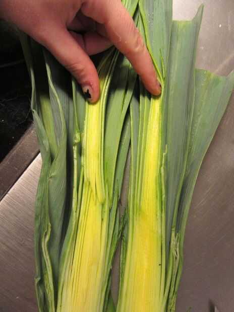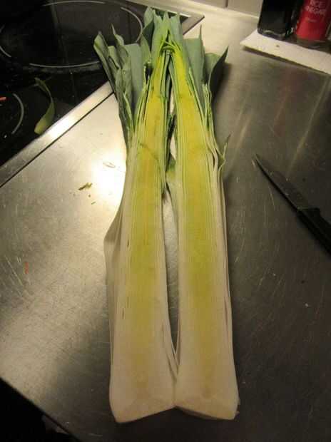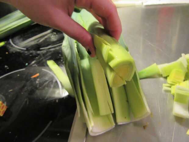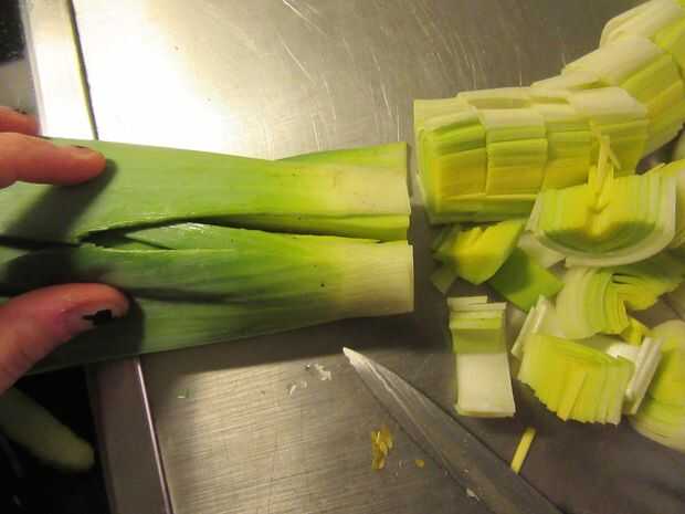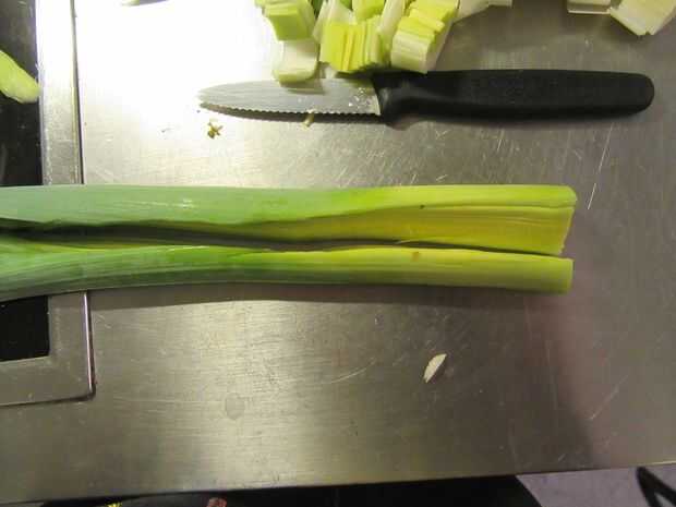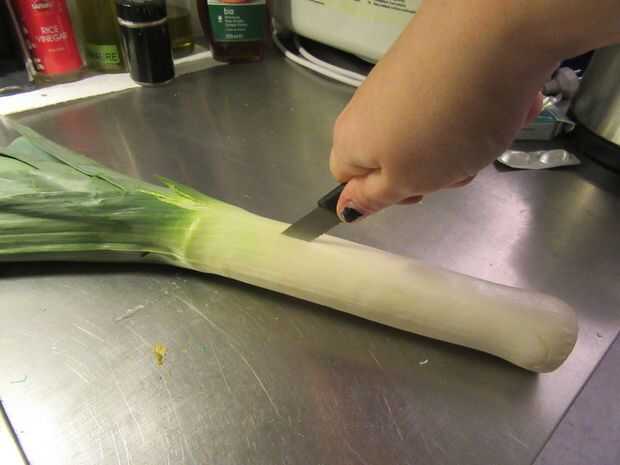 2. Corte el puerro a lo largo.