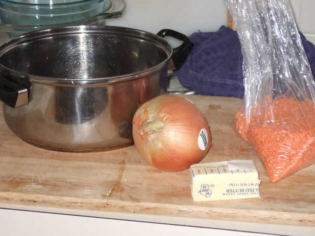 se muestra con la opción de añadir alguna pasta.. .un gran idea para la izquierda sobre lentejas al día siguientePaso 1: ingredientes 1 onion3-5 piezas de sol tomates secos2 tazas de lentejas verdes1 taza de lentejas naranjas1 pimiento rojo dulce1 pe