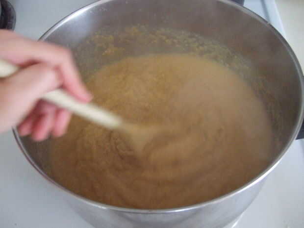 Cuando usted ha agregado todas las lentejas, removiendo todo el tiempo para tener un puré precioso, liso, grueso, comenzar a añadir el agua hirviendo. Sólo vas a disipe la sopa como sea necesario, y puede que no necesite toda el agua, así que vaya un poco a la vez, demasiado. Fina la sopa más de lo que usted piensa que deberían, porque continuará el roux espesar mucho después de que termine de cocinarla, y al día siguiente va a ser bastante grueso.