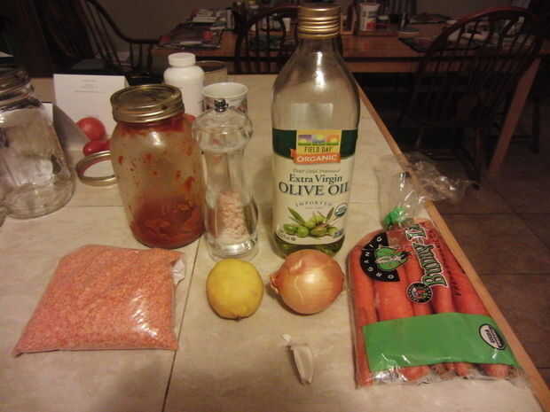 se muestra con la opción de añadir alguna pasta.. .un gran idea para la izquierda sobre lentejas al día siguientePaso 1: ingredientes 1 onion3-5 piezas de sol tomates secos2 tazas de lentejas verdes1 taza de lentejas naranjas1 pimiento rojo dulce1 pe