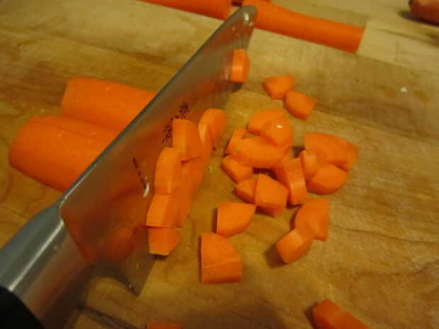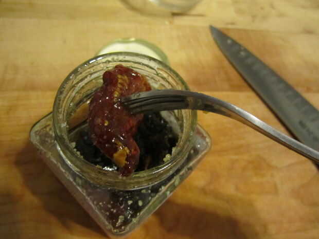 En un tazón, poner las zanahorias, pimientos, tomates secos, albahaca y orégano.