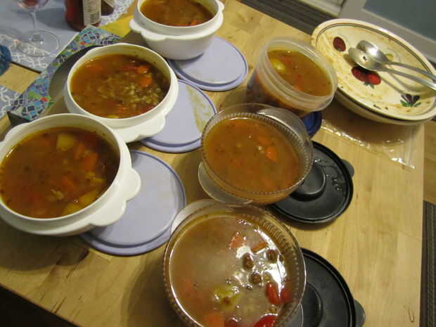 Esta sopa hace grandes sobras, si sabes cómo hacerlo correctamente. Lentejas y cebada son de pasta - siguen absorber líquido, incluso después de la cocción. Si dividen tu sopa como es, cuando vuelvas de las sobras después, te encuentras con algo parecido a un guiso o incluso un risotto. Aquí está el truco: