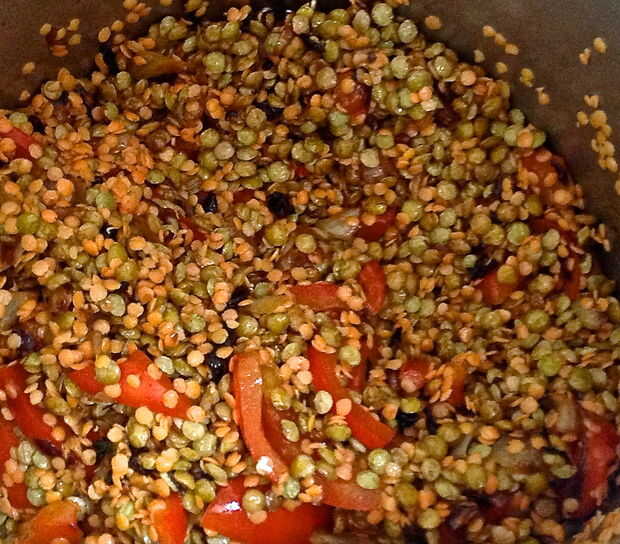 es enérgica, saludable y deliciosa receta que quiero compartir con ustedes.Excelente para el tiempo frío y fácil de hacer.Paso 1: Recoger todos los ingredientes. Te necesita:× 1 taza de lentejas.× 1 taza de guisantes congelados.× 1/2 taza de burghul.