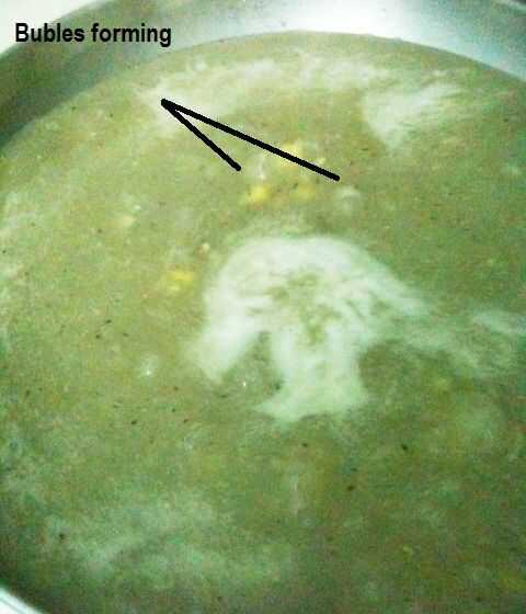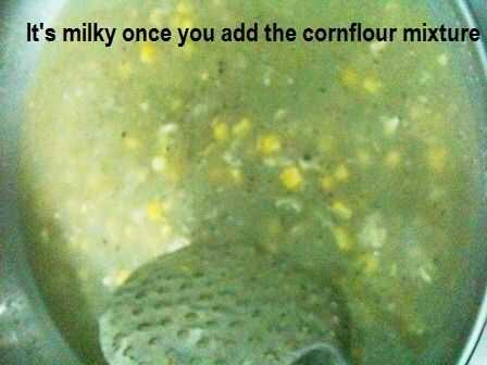 4. Añadir la mezcla de harina de maíz a la sopa... esto espesar la sopa y que sea de color blanco lechoso...