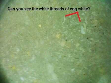 6. separar el huevo... Añadir 1 cucharadita de caldo enfriado a la clara de huevo y mezclar bien...