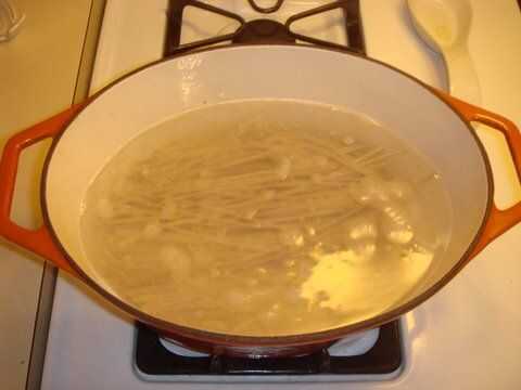 1) una vez que el agua esté hirviendo, añadir los fideos soba y darles un gran revuelo