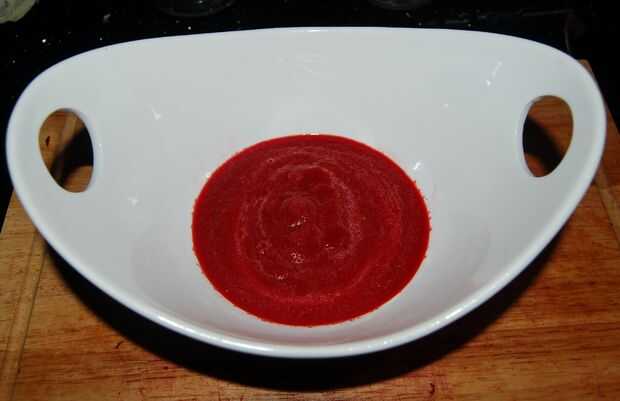 Con un bambú pincho (u otra herramienta fina) remolino la sopa de brócoli en un patrón de la corona.