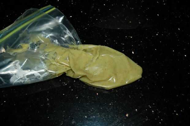 Cuchara de entre el brócoli verde dentro de una bolsa de sándwich.