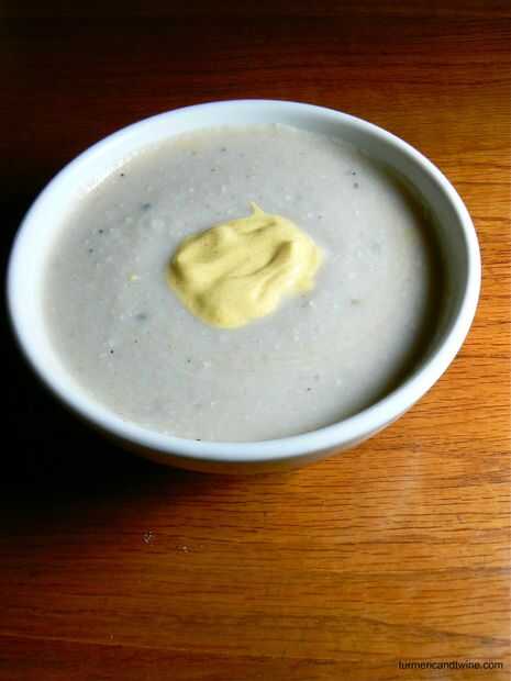 Este anacardo coliflor biscuit con salsa de yogur al curry es realmente bonito y equilibrado. La suavidad suave, nuez de Marañón con el azufre de la coliflor. La salsa de yogur añade tang perfecto. También, preparando una salsa para una sopa te hace sentir que estás en la cima de las cosas y sabes lo que estás haciendo.