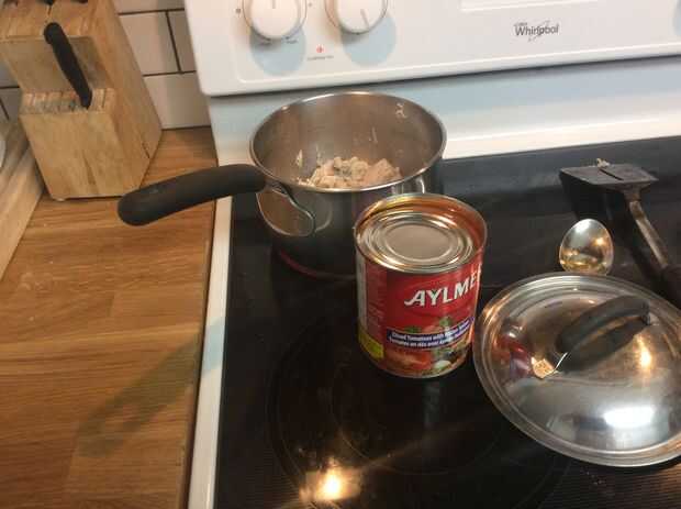 O simplemente puede añadir una lata de tomates en cuadritos (alrededor de 540 ml puede / lata ~ 18 onzas). Un poco más grande o más pequeña puede no ser un problema, utilizar lo que tienes.
