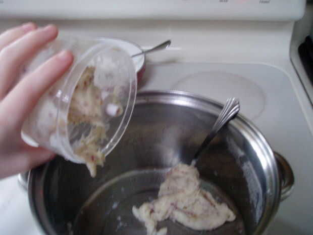 Una de mis sopas favoritas. Es realmente rápido y fácil de cocinar. Todo lo que necesitas:unas patatas,una cebolla,caldo de polloy opcionalmente carne de pollo o salchichas.Paso 1: Cortar las patatas y hervirlas. Más papas - tendrá menos líquido de l