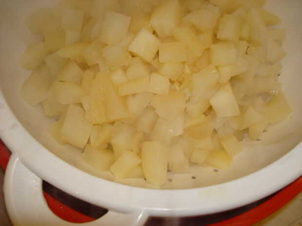 Colocar un colador sobre un recipiente grande para recoger el caldo.
