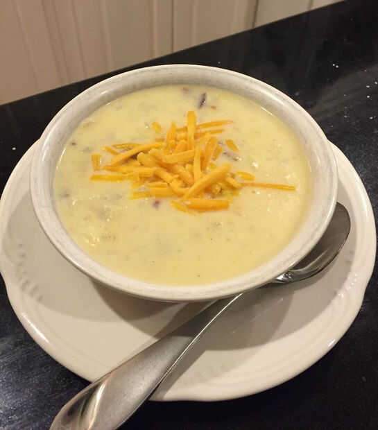 esta es la mejor sopa de patata del mundo. Es cremoso, caseoso y peligroso. Esta versión de sopa de patata no es buena para usted. Probablemente debería hacerlo una vez al año. Y no más que eso. : DTal vez debo han hecho la receta complicada para que