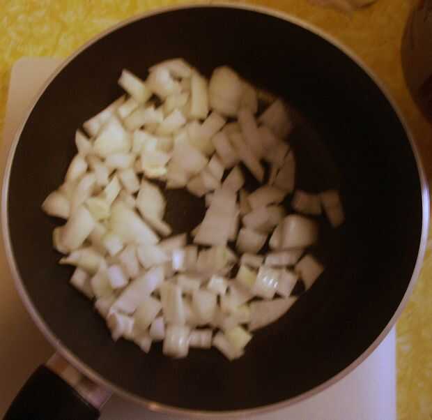 4. calentar la olla, revolviendo con frecuencia con el instrumento de agitación, hasta que todas las partes de la cebolla estén doradas.