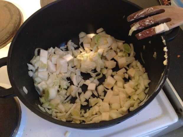 3. Mientras tanto, trocear las cebollas, ajo, apio y puerro.