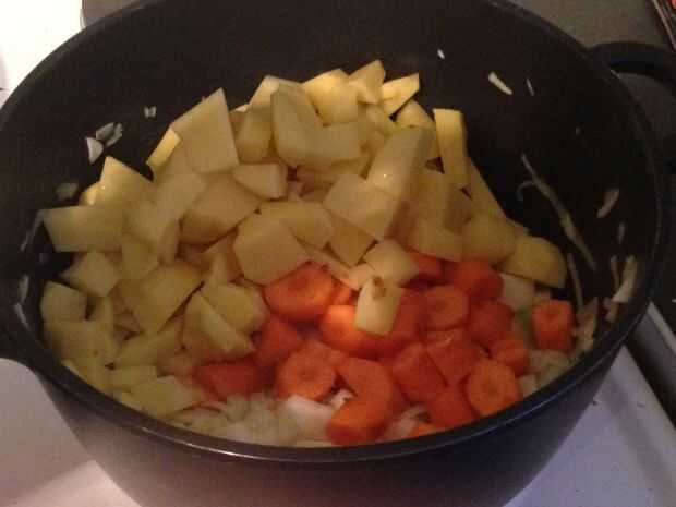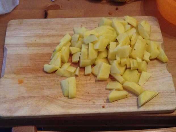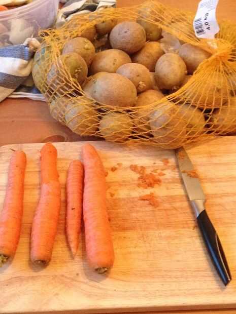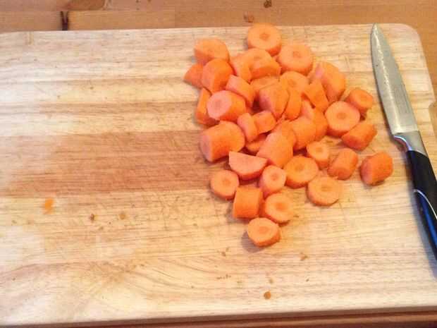 5. Mientras tanto, trocear la zanahoria y la patata. No importa grande o pequeño.