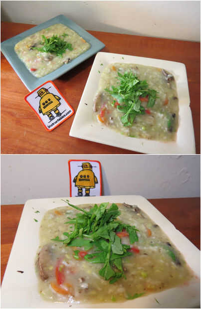 6. la máquina de arroz se debe acabar ahora, añadir el arroz así (no se mezclan nada más)