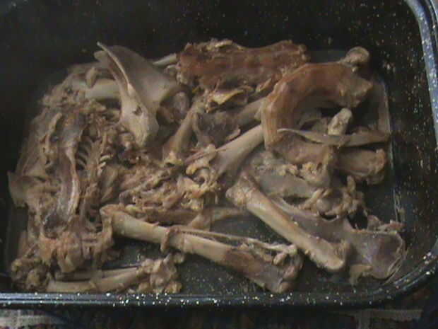 Dejo los huesos drenaje adicional en el mismo colador con la grasa.