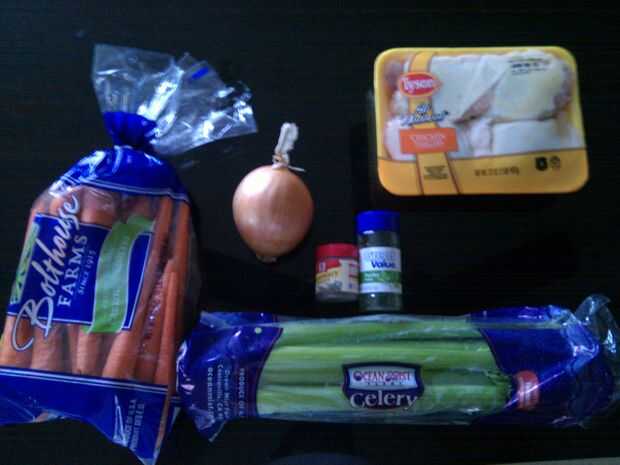 Necesita una comida rápida y la otra noche y yo tenía algunos pechuga de pollo ya descongelada. Compone esta comida (con la ayuda de mi hijo) sobre la marcha y fue delicioso!Paso 1: ingredientes Generalmente tengo apio y pimientos en mi sopa de pollo