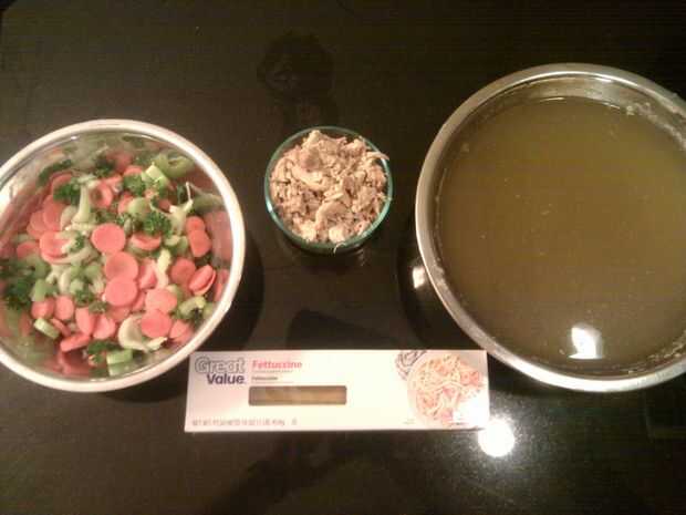 -Fideo grueso (1 porción, rotos lo largo en cuartos)