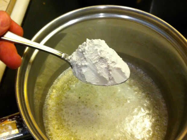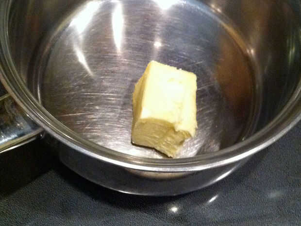 En una cacerola mediana derretir la mantequilla (4 a 8 cucharadas) y añadir a una cantidad igual de harina. Seguir revolviendo y va a convertir en una pasta. Dejo que pudo conseguir no me gusta la mina demasiado oscuras de color marrón amarillento.